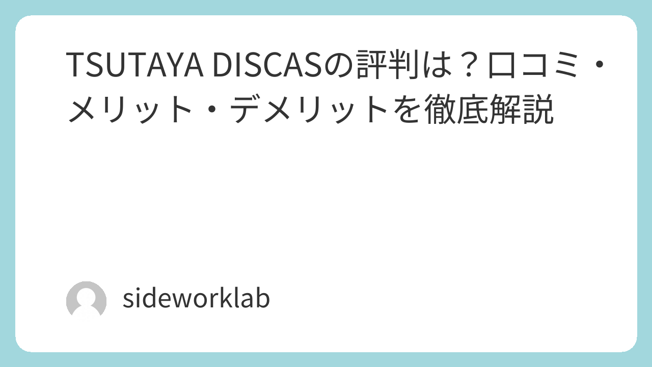 この記事では、TSUTAYA DISCASの評判・口コミ・メリット・デメリット・料金をわかりやすく解説します。